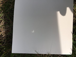 Here in Massachusetts we only saw around 65% obscuration. Some areas around the state had clouds and for a little while, it looked like we wouldn't be able to see the eclipse either, but the sun came out. Teague indulged me as I knew she would while I tested to see if my camera obscura would work on a patch of sunlight coming through the kitchen window.